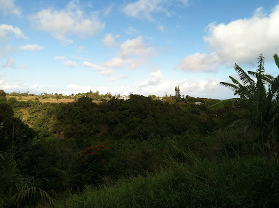 My Italian class ended that was taught at the local University and the teacher gave the option to continue at her school up in Haiku. I love learning Italian so of course I carried on the class. The first class was last Friday. The class is in the teacher's (insegnante=teacher in italian) back yard in a hand built school house at the back of her property. It's adreoable. If only I had class in this school house during highschool or college, I would be so much more inclined to pay attention, listen, not daydream. It's so uplifting. The inside of the small schoolhouse is painted yellow and orange. It overlooks the green tropical fields behind it, out onto the ocean. The temperature is perfect. We didn't even use the lights because it was so well lit from natural light from all of the windows. I just fell in love with that classroom. I have another 7 classes (every Friday) and depending on how many students want to continue after that we may go another couple of weeks.